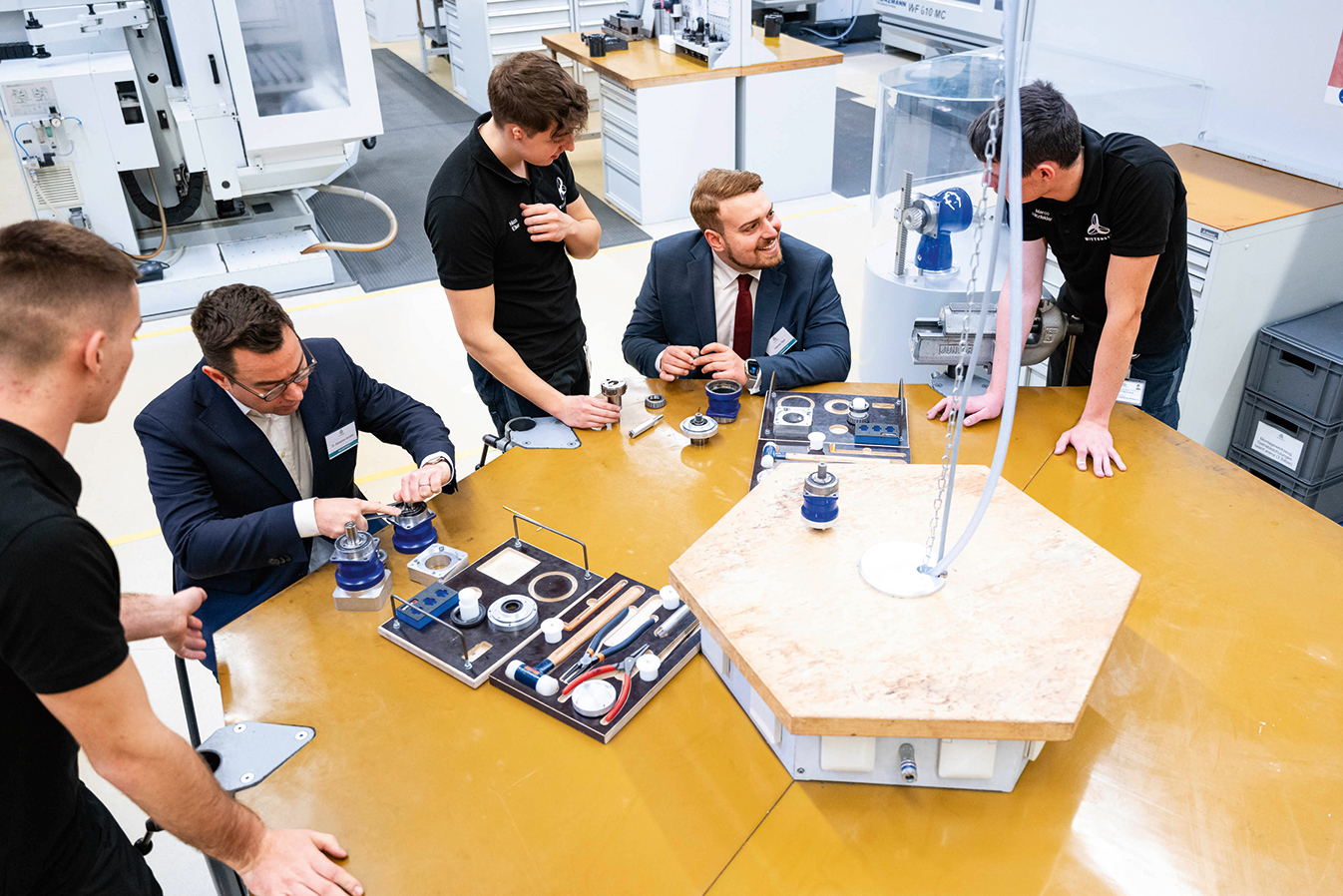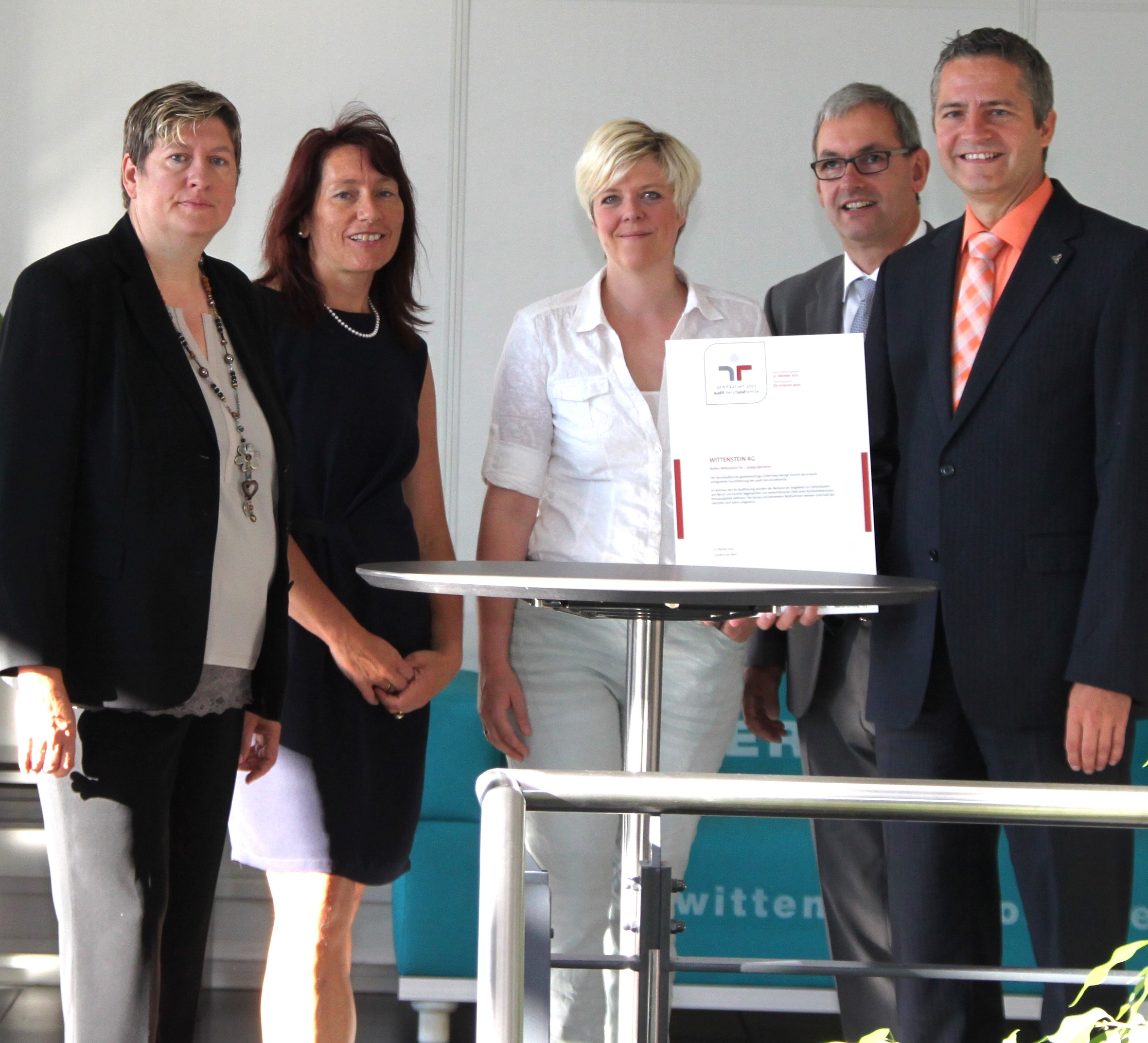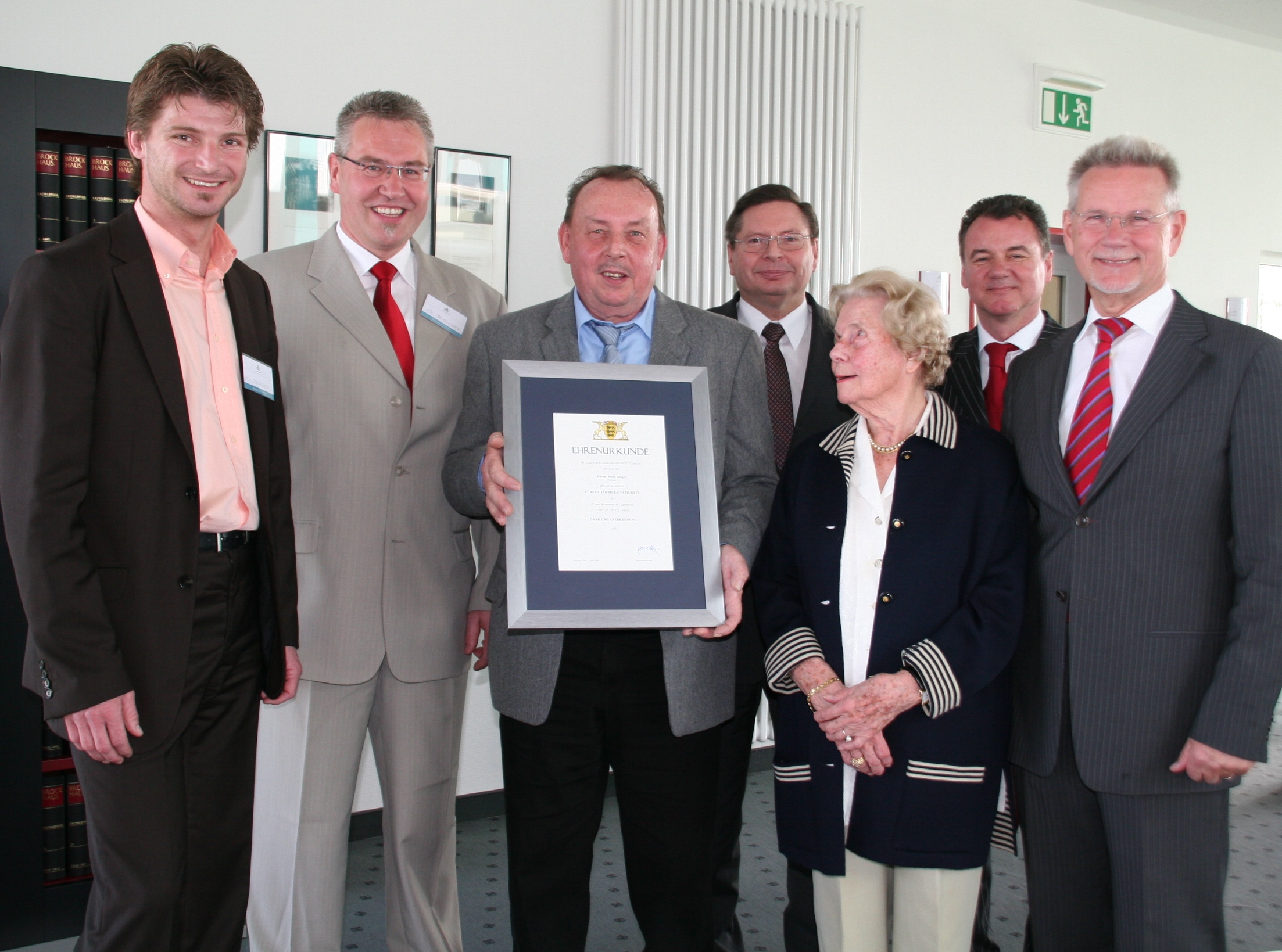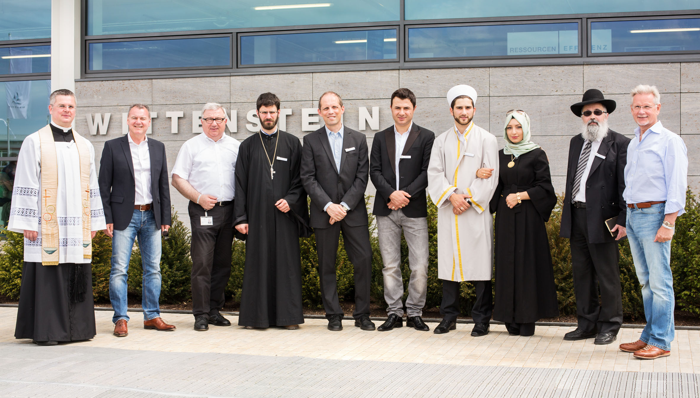 Die 25er Jubilare und Rentner der WITTENSTEIN SE gemeinsam mit dem Vorstand, dem Leiter Human Resource Management und dem Betriebsratsvorsitzenden v.l.n.r.: (Oliver Kössel, Niko Neckermann, Hermann Esau, Karl Sigloch, Ernst Kaltdorf, Klaus Hitzfelder, Reinhard Oppitz, Susanne Fries, Ulrich May, Josef Gitter, Andreas Pelz, Hartmut Kampa, Dr. Anna-Katharina Wittenstein und Erik Roßmeißl