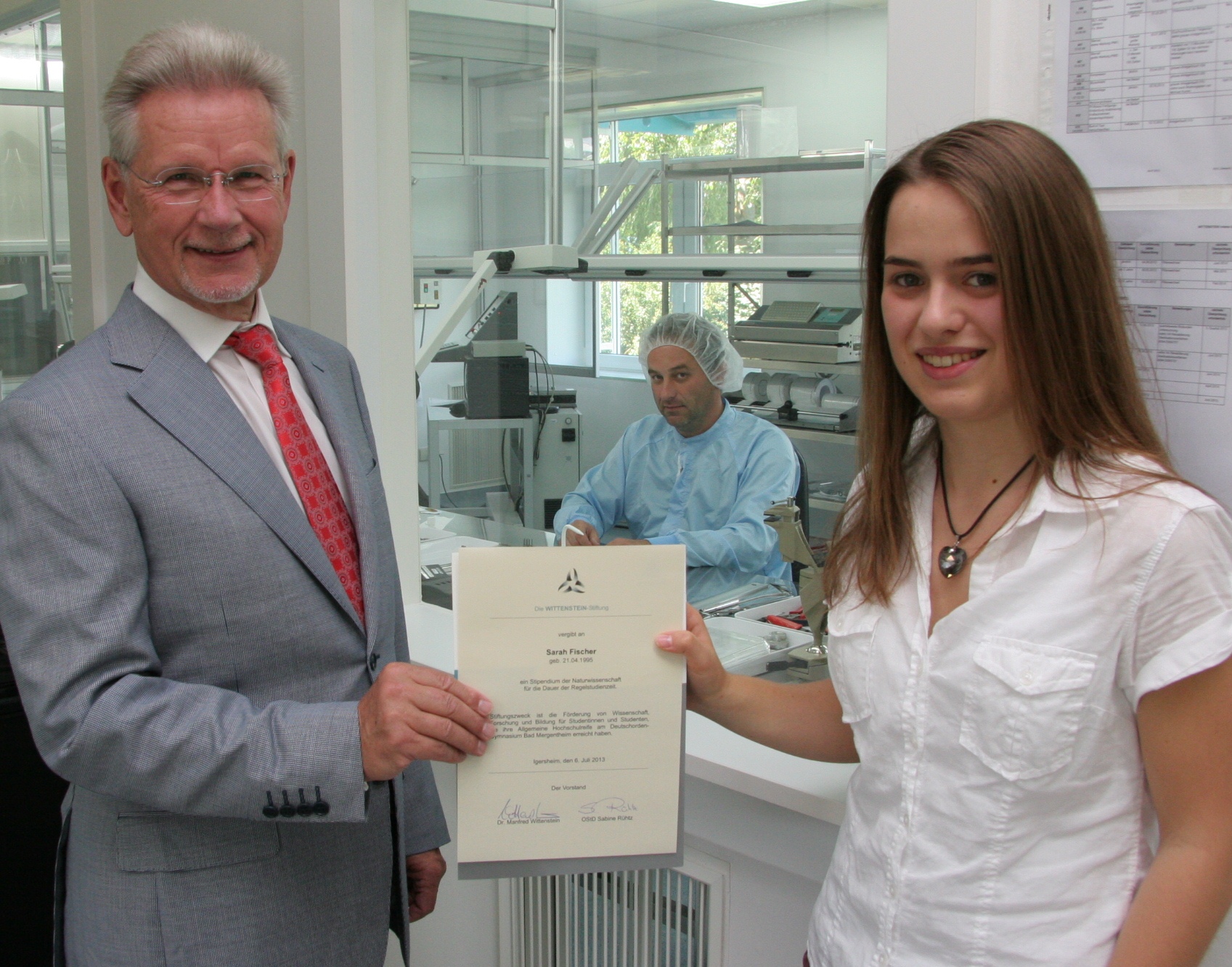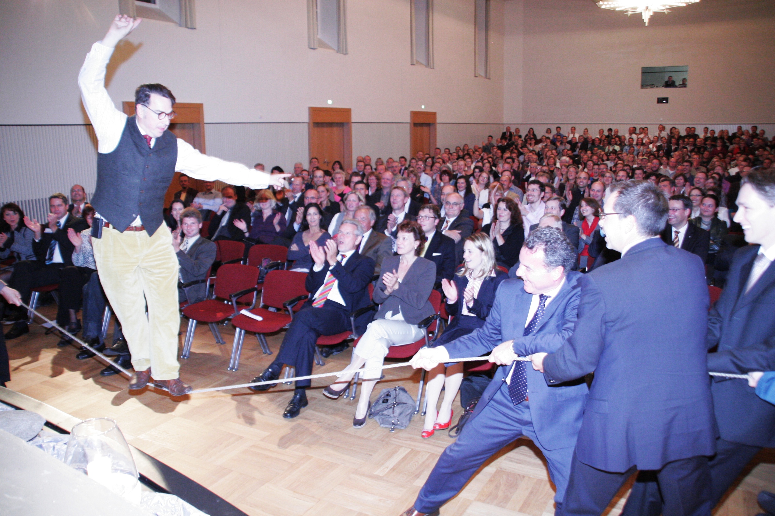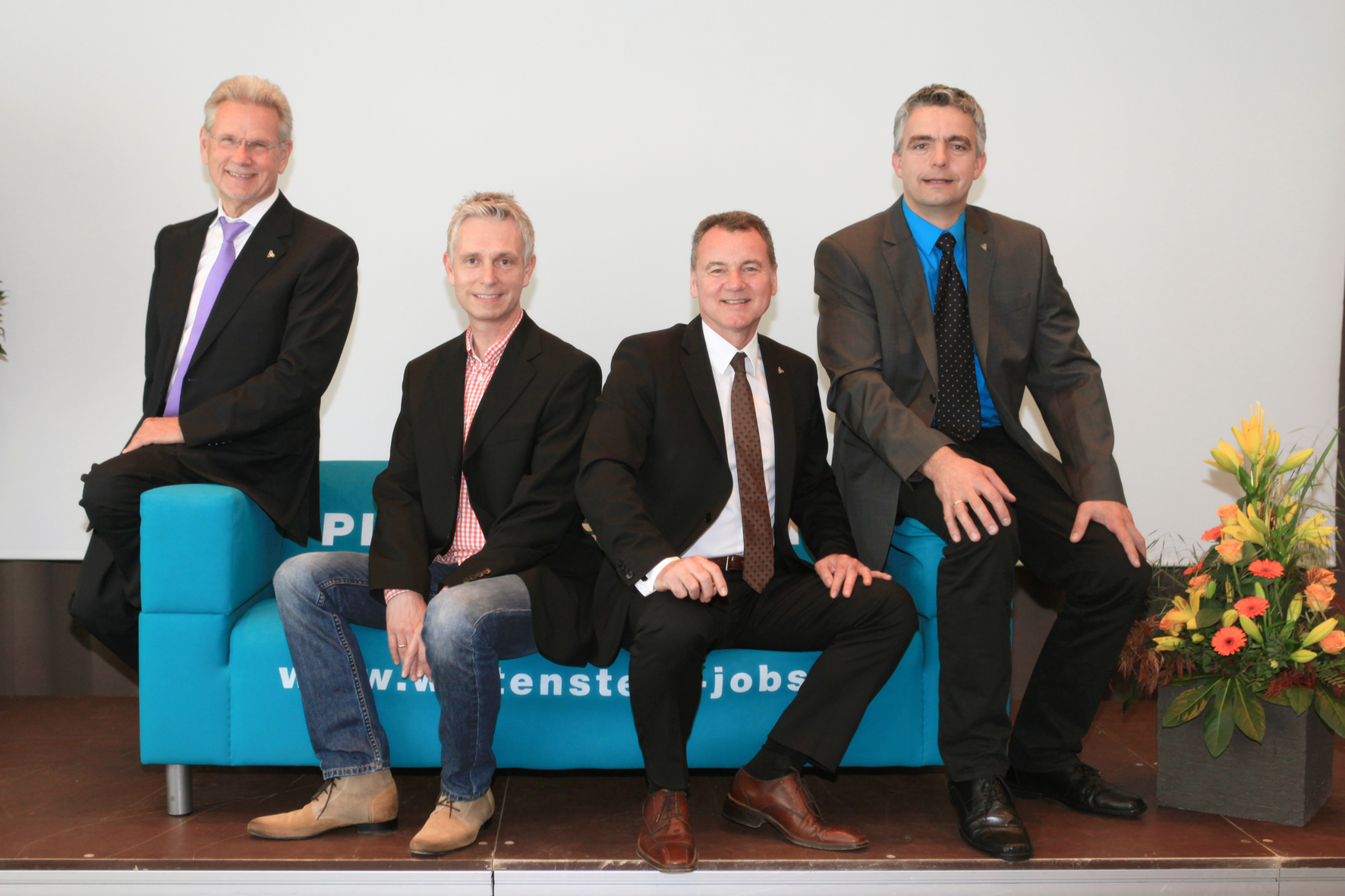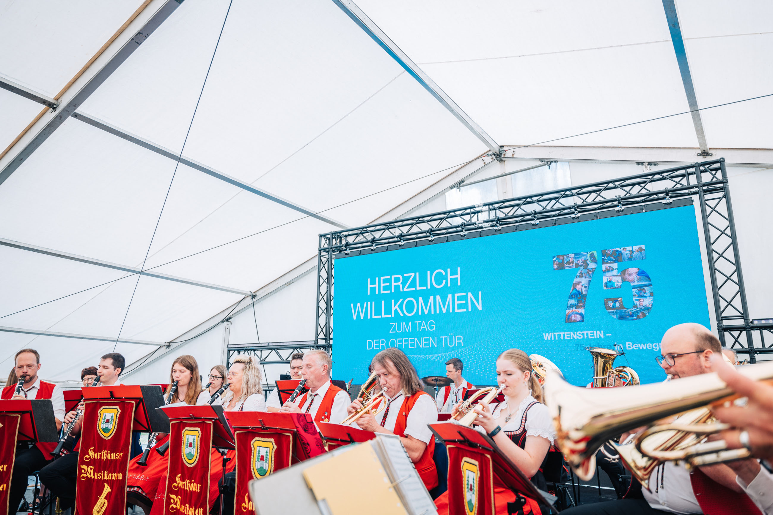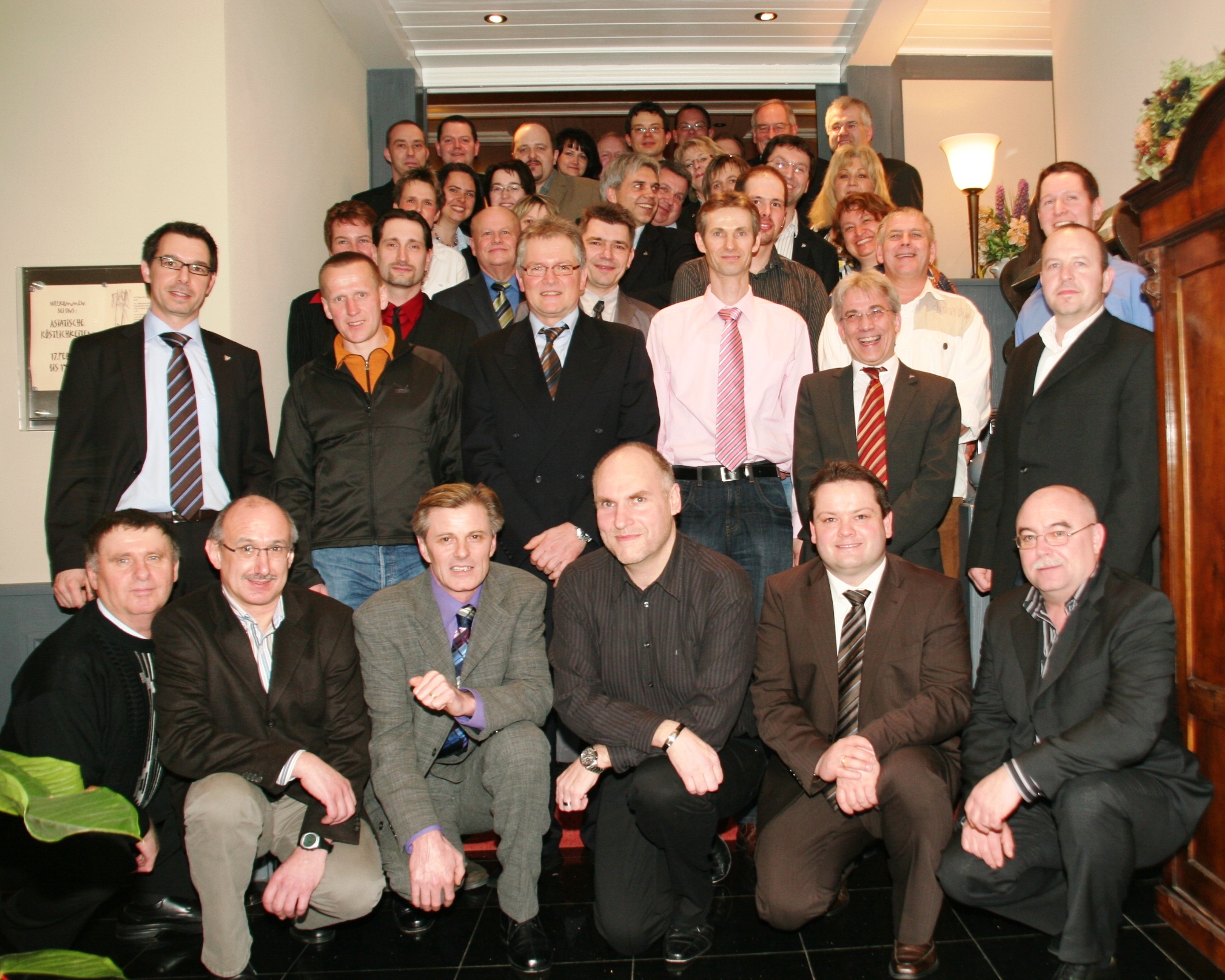 Die 25er Jubilare und Rentner der WITTENSTEIN SE gemeinsam mit dem Vorstand, dem Leiter Human Resource Management und dem Betriebsratsvorsitzenden v.l.n.r.: (Oliver Kössel, Niko Neckermann, Hermann Esau, Karl Sigloch, Ernst Kaltdorf, Klaus Hitzfelder, Reinhard Oppitz, Susanne Fries, Ulrich May, Josef Gitter, Andreas Pelz, Hartmut Kampa, Dr. Anna-Katharina Wittenstein und Erik Roßmeißl