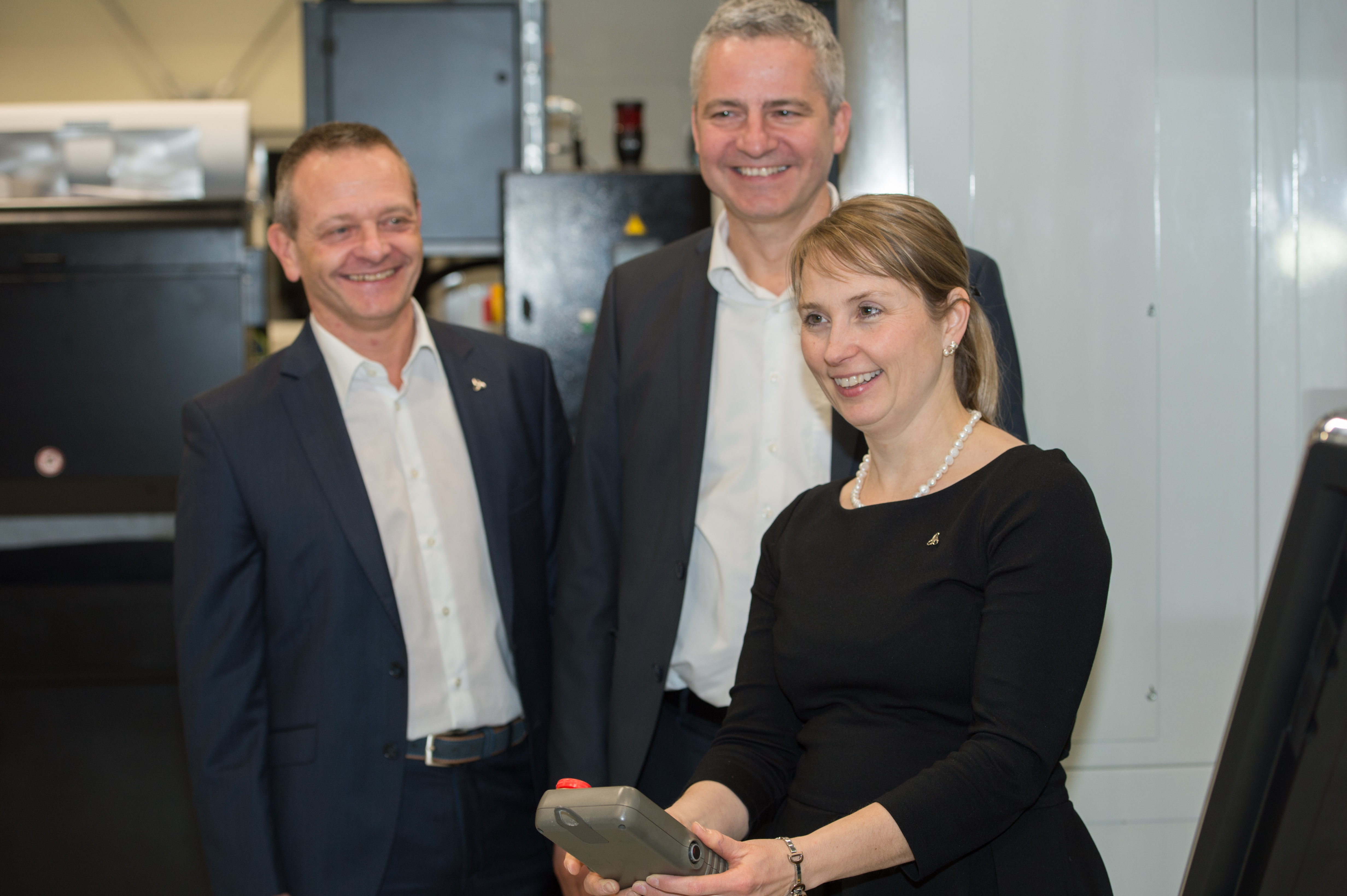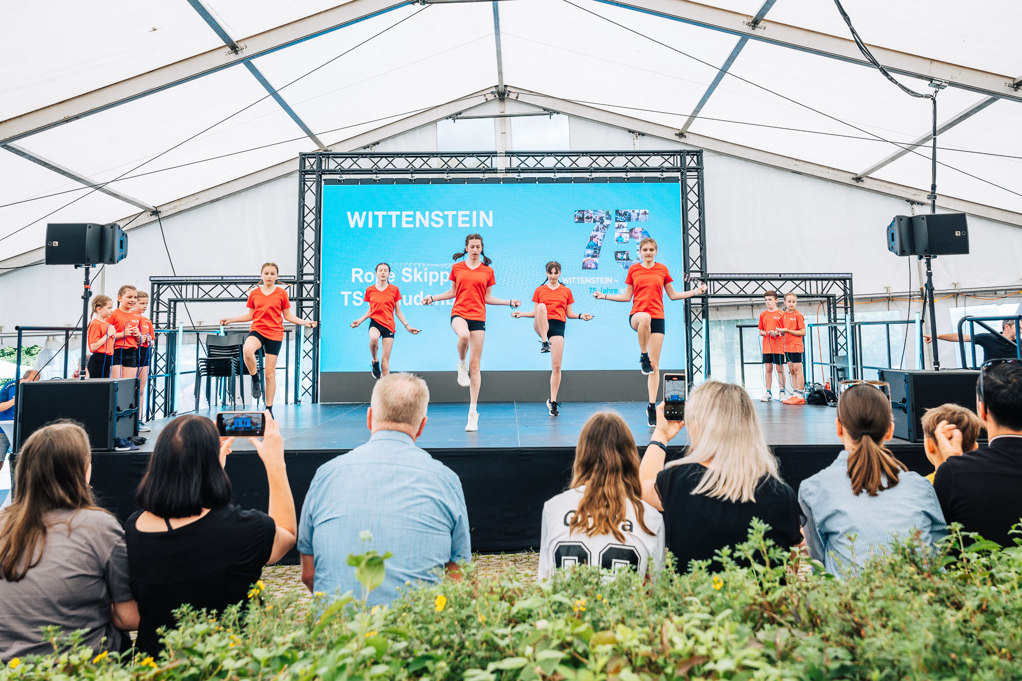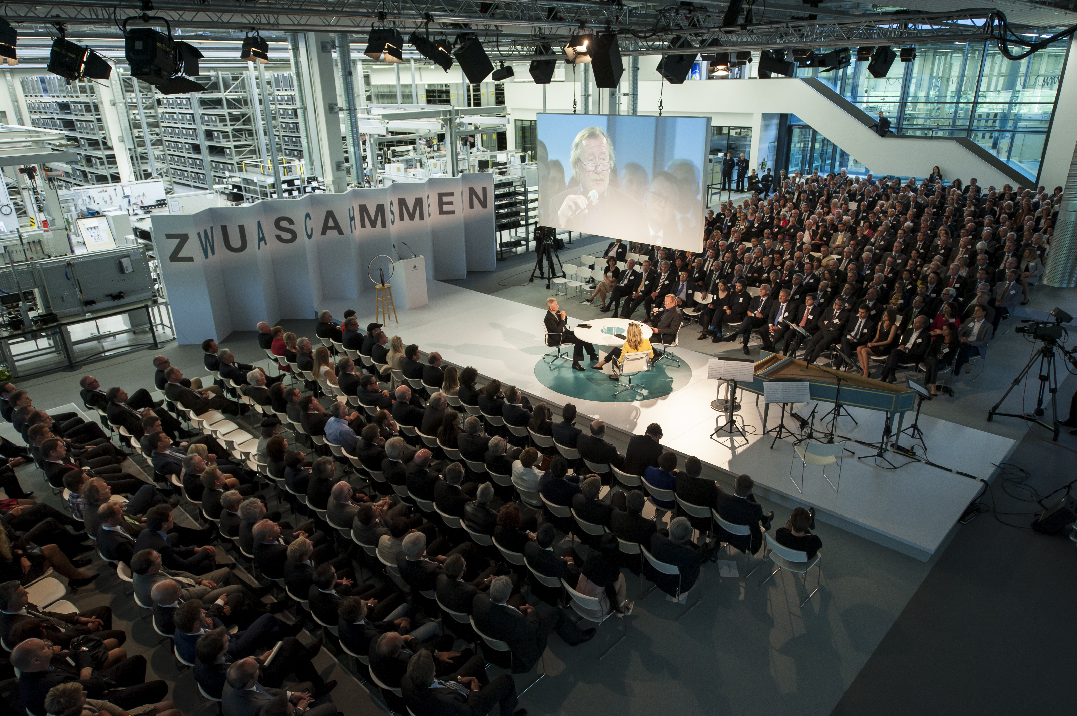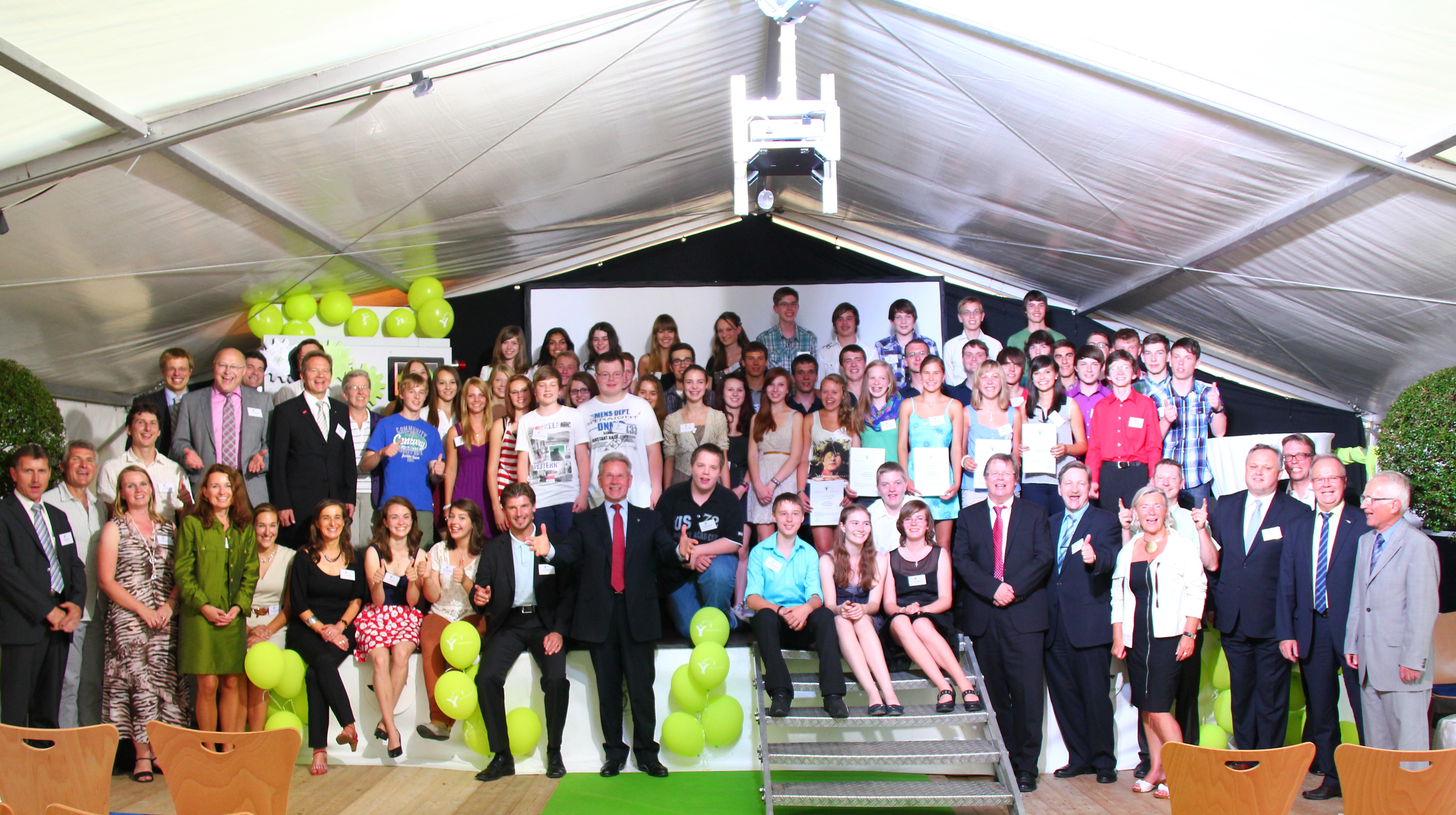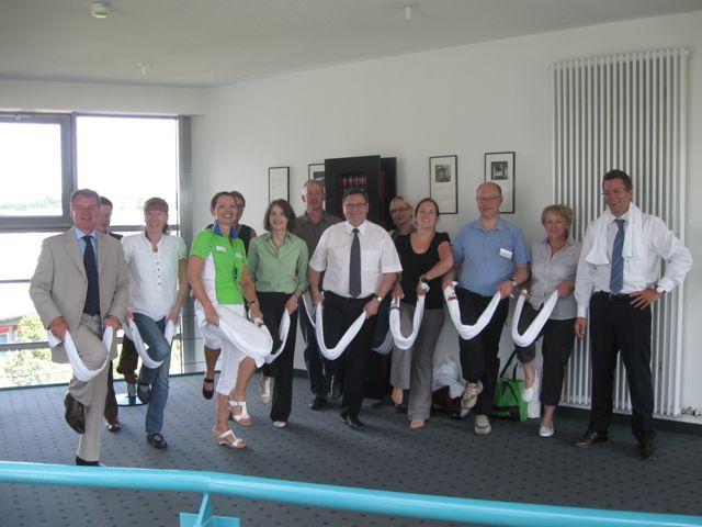 Die 25er Jubilare und Rentner der WITTENSTEIN SE gemeinsam mit dem Vorstand, dem Leiter Human Resource Management und dem Betriebsratsvorsitzenden v.l.n.r.: (Oliver Kössel, Niko Neckermann, Hermann Esau, Karl Sigloch, Ernst Kaltdorf, Klaus Hitzfelder, Reinhard Oppitz, Susanne Fries, Ulrich May, Josef Gitter, Andreas Pelz, Hartmut Kampa, Dr. Anna-Katharina Wittenstein und Erik Roßmeißl