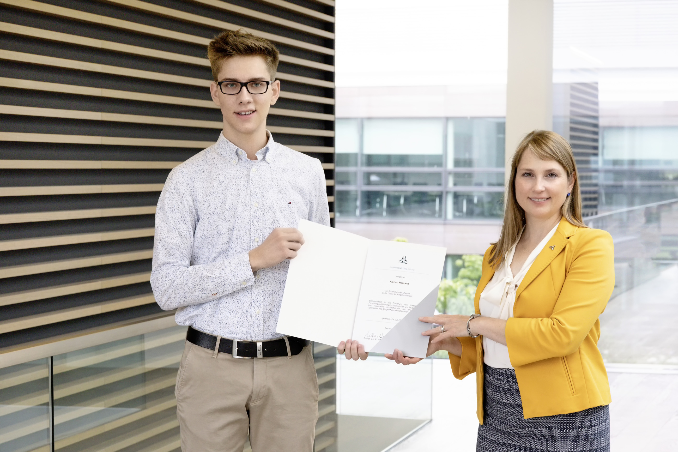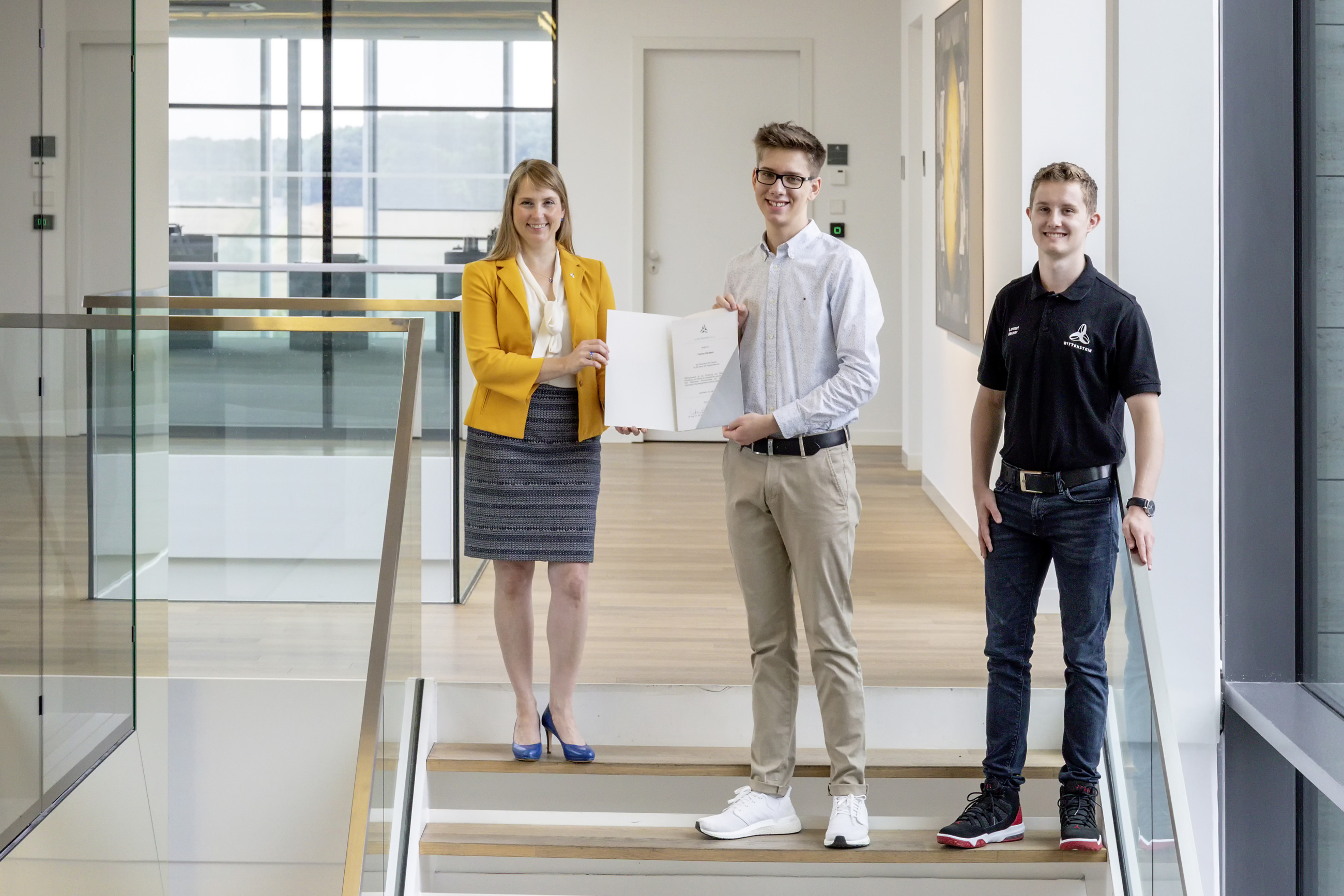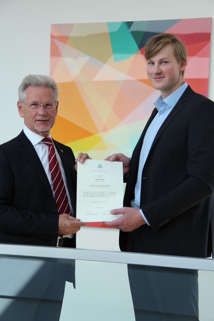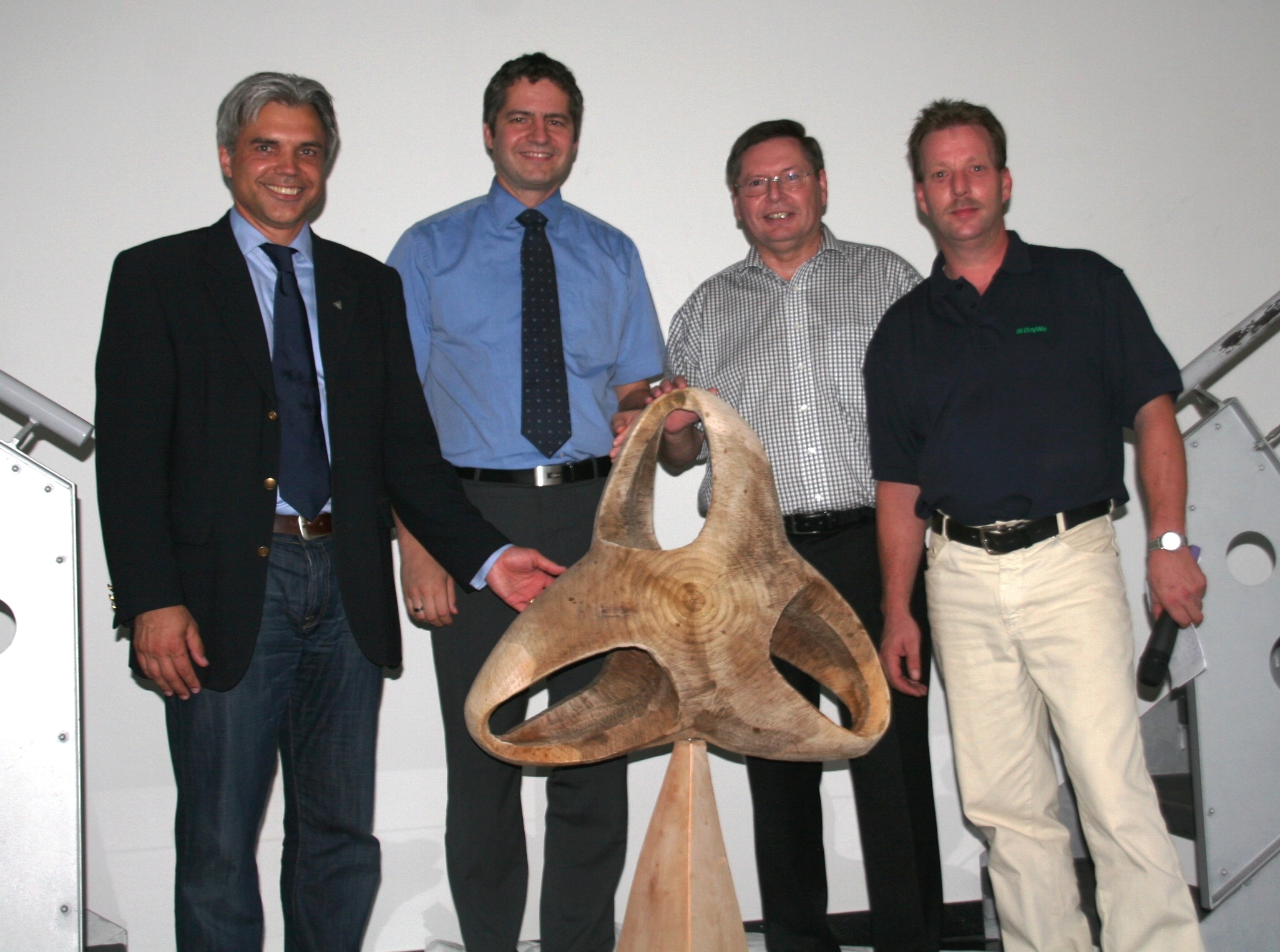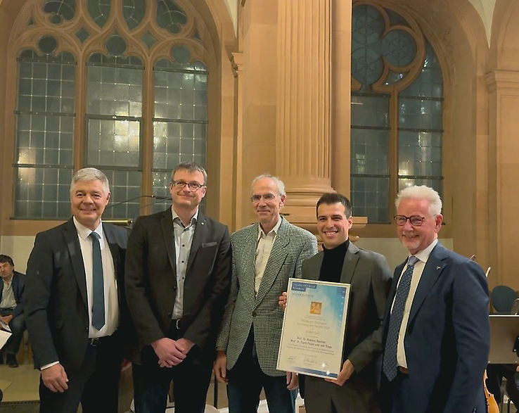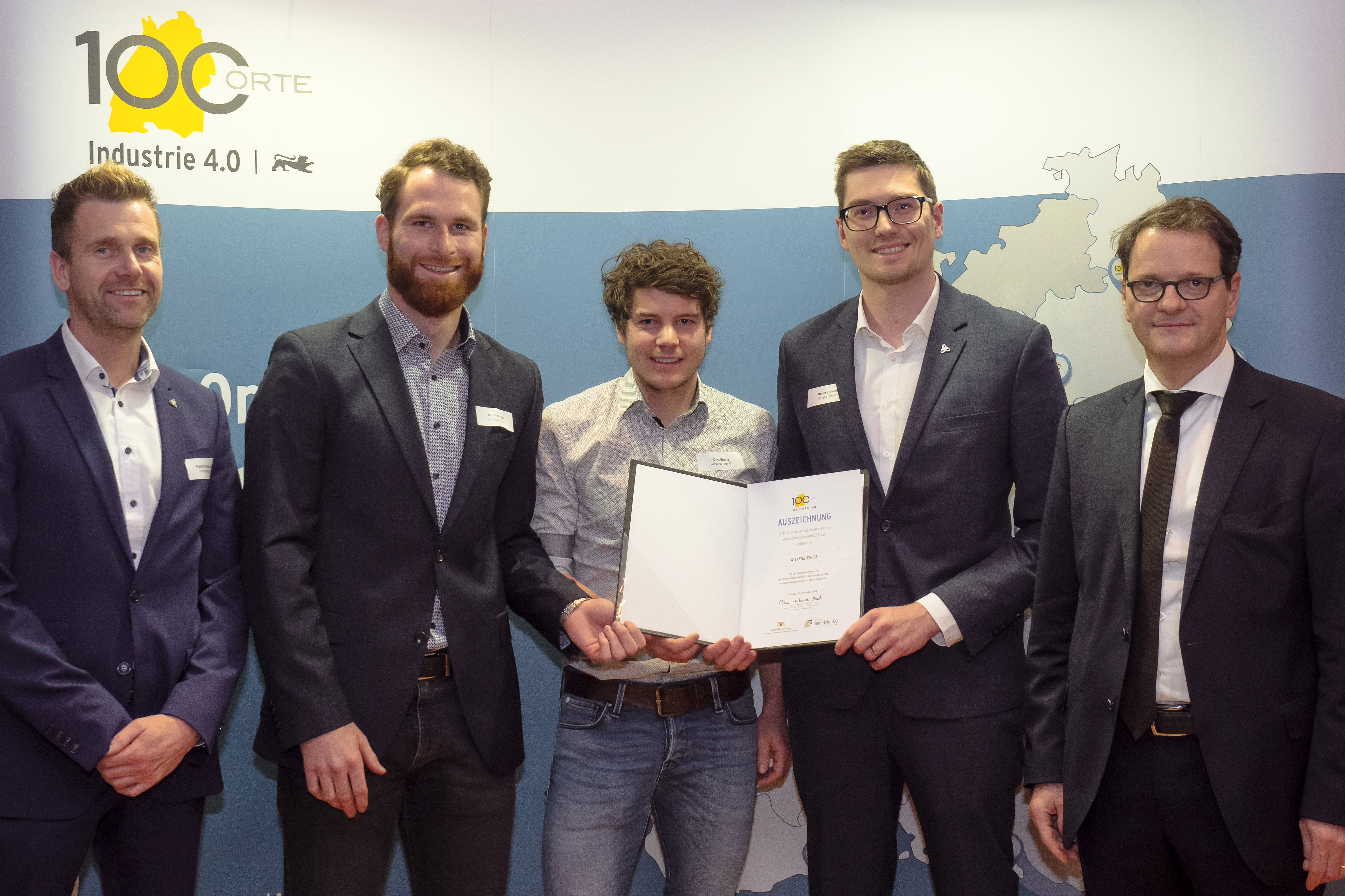 Dr. Manfred Wittenstein, Aufsichtsratsvorsitzender WITTENSTEIN SE, hat die Dieselmedaille 2019 in der Kategorie „Nachhaltigste Innovationsleistung erhalten: im Bild rechts, gemeinsam den Preisträgern der anderen drei Kategorien: Klaus Eisert (Phoenix Contact GmbH & Co. KG, "Erfolgreichste Innovationsleistung"), Martin Verg (GEOlino, Gruner + Jahr GmbH, "Beste Medienkommunikation"), Stefanie Herrmann und Thorsten Rudolph (AZO Anwendungszentrum GmbH Oberpfaffenhofen, "Beste Innovationsförderung") / Foto: Daniel Hinz, A.P.I.