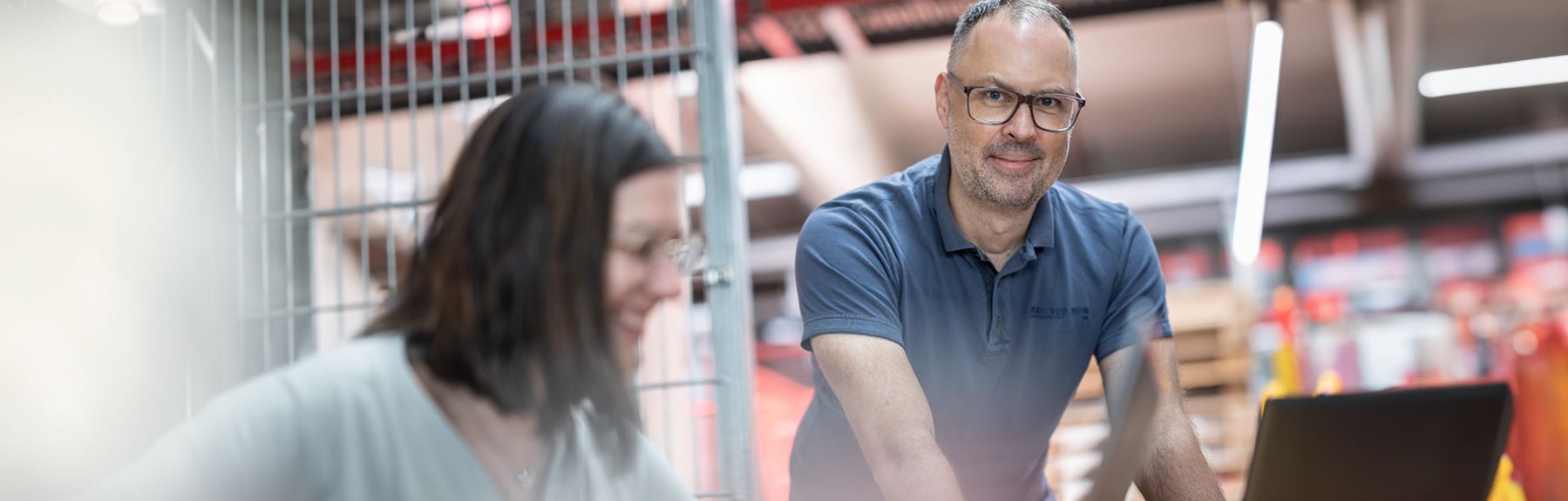Teckentrup ist neuer RFID-Kanban-Kunde der Würth Industrie Service und nimmt das 1000. iSHELF® in Einsatz – v.l.n.r. Ronnie Sassenberg, Strategischer Einkauf Teckentrup, Jörg Ruppelt, Außendienst Würth Industrie Service,
