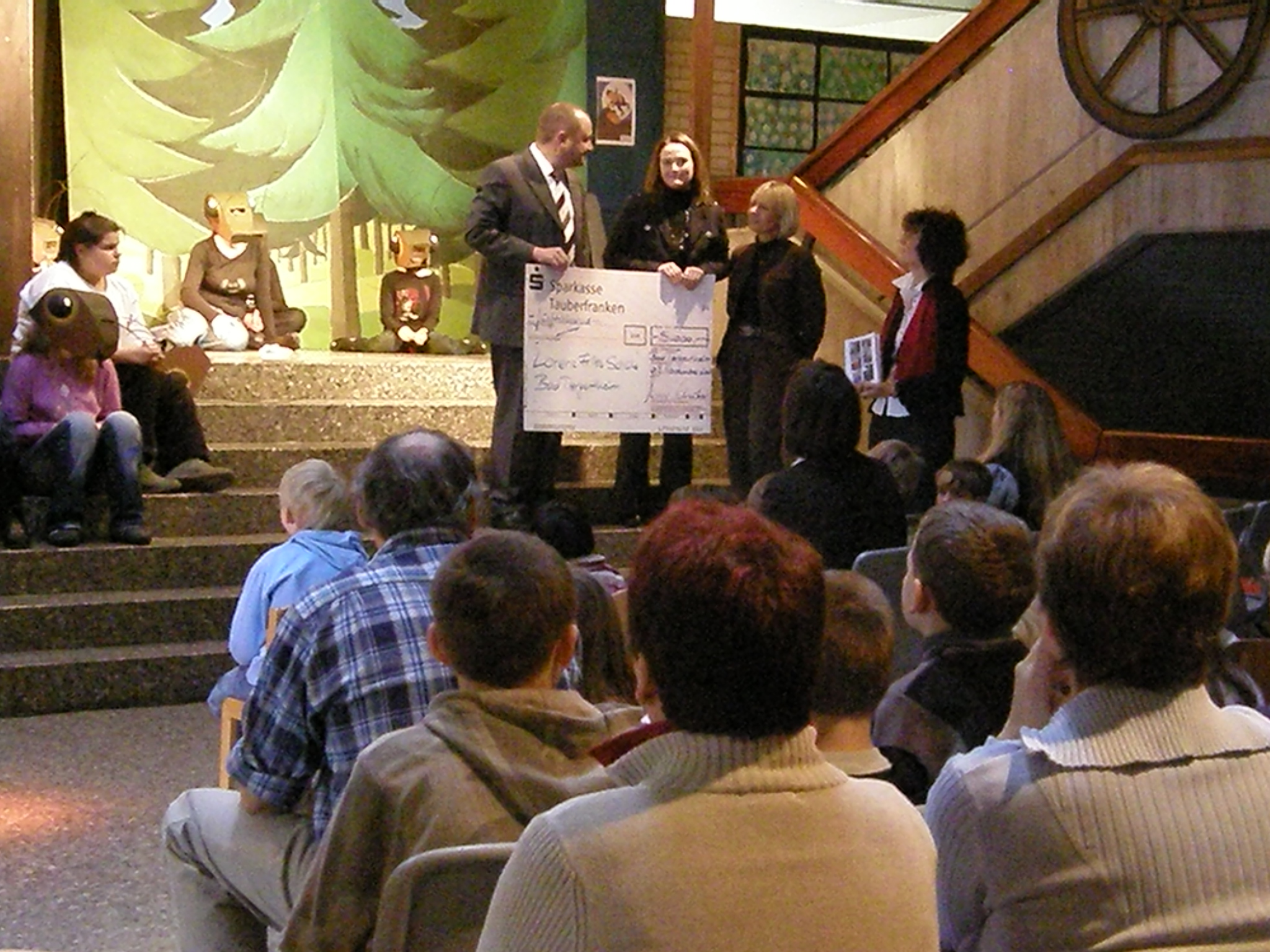 Rainer Bürkert übergibt den Spendenscheck an Schulleiterin Karin Endres