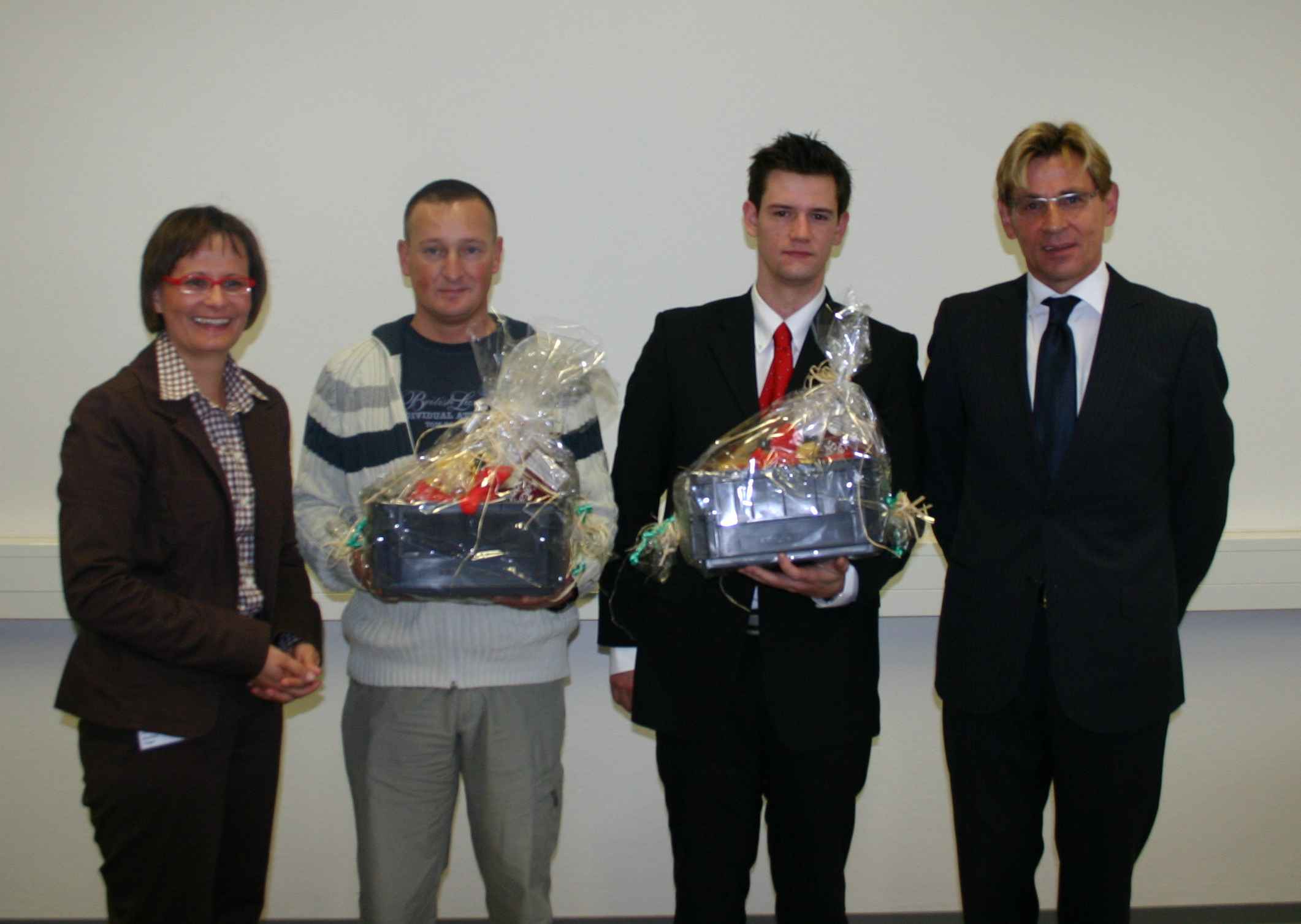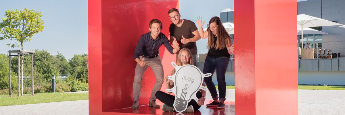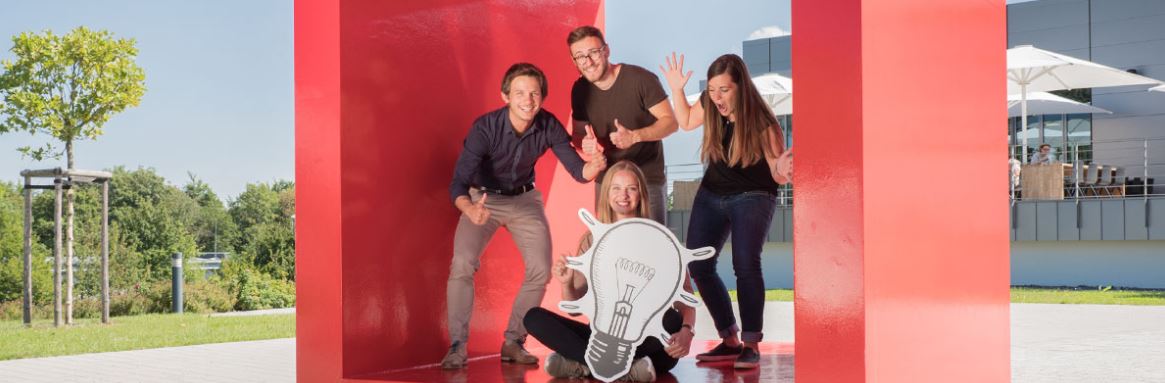 Beim Willkommensgruß: (v.l.n.r.) Martina Heger, Leiterin Personal, Frank Bräckle, Philipp Steinbach, Eberhard Scheuber, Geschäftsführer der Würth Industrie Service GmbH & Co. KG