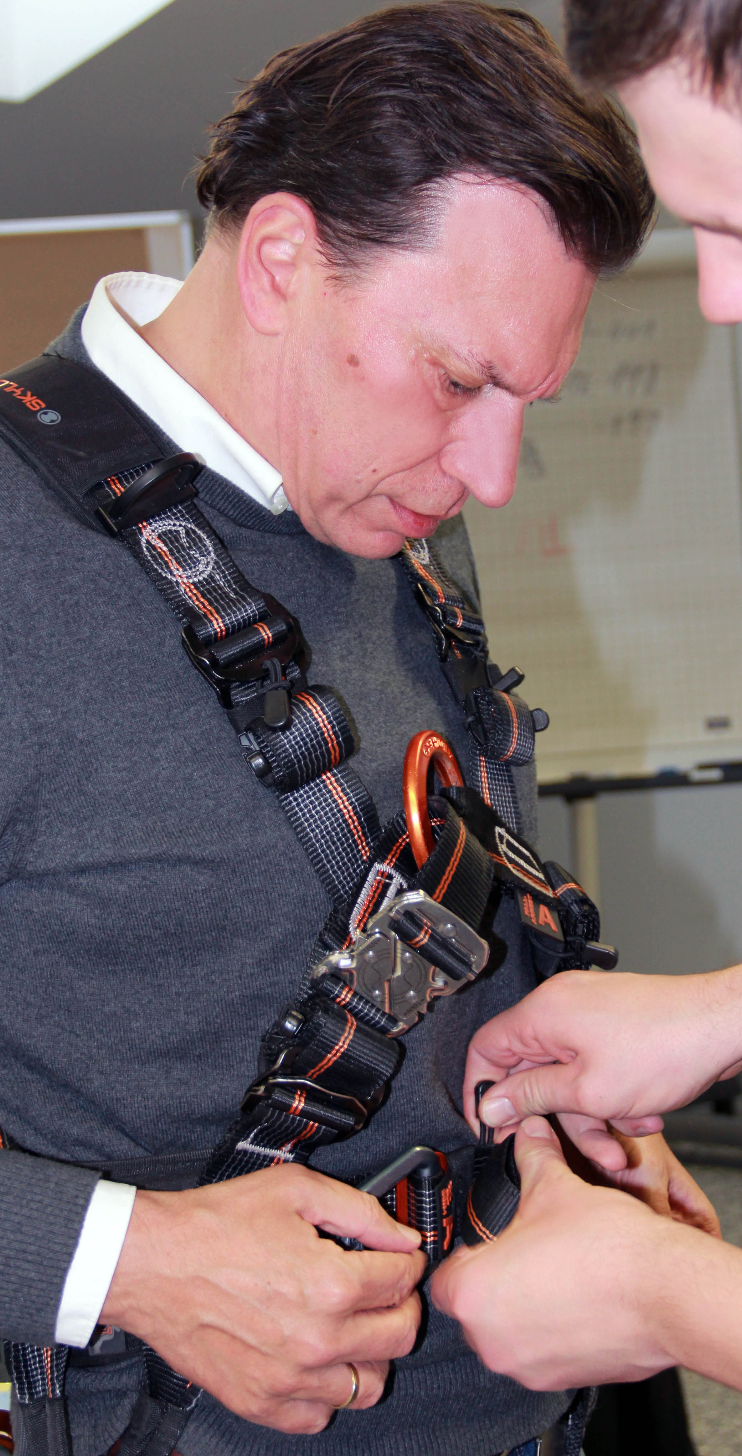 Beim Weiterbildungsseminar zum Produktspezialisten PSA standen auch praktische Übungen auf dem Programm, zum Beispiel zum Thema Fallschutz