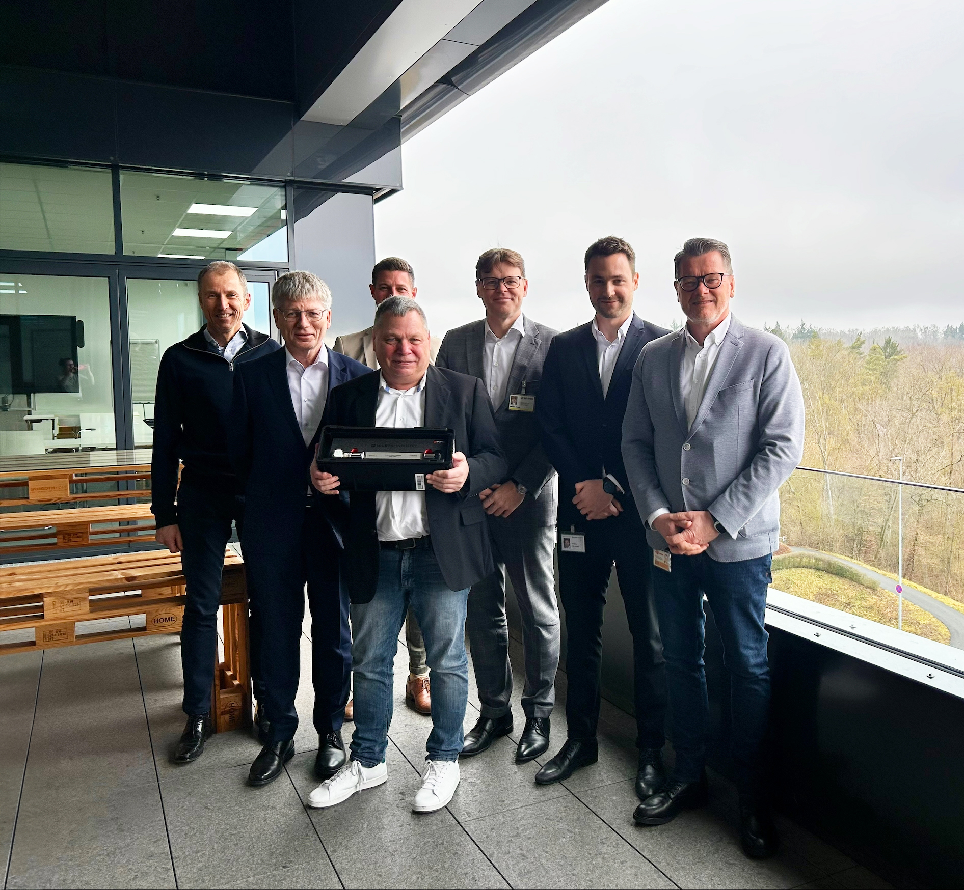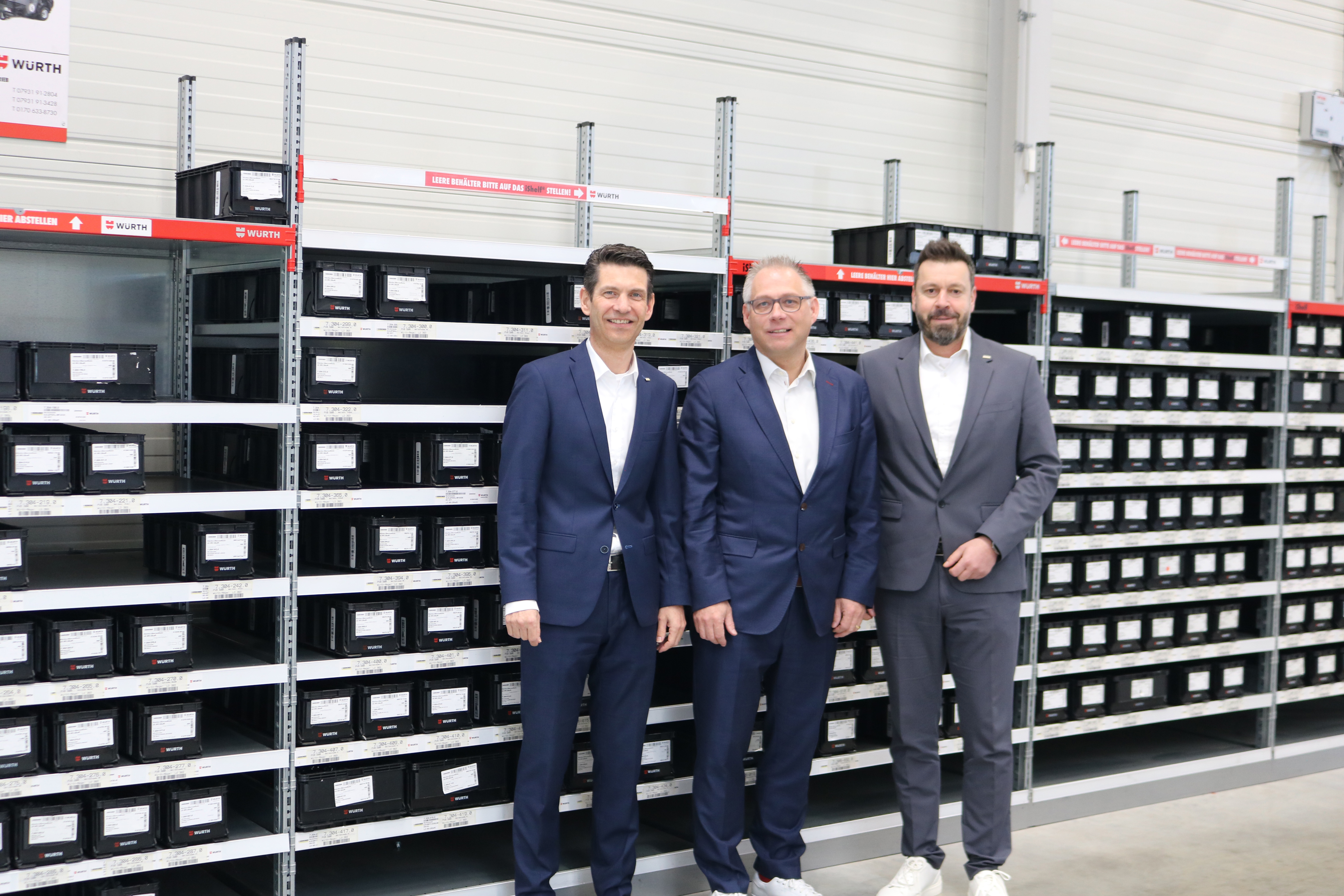 v.l.n.r. ; Roland Grimm, Key Account Manager der Würth Industrie Service; Maurizio Magini, Leiter Produktionslogistik des Schuler Konzerns; Maximilian Brändle, technischer Werkleiter Müller Weingarten Erfurt