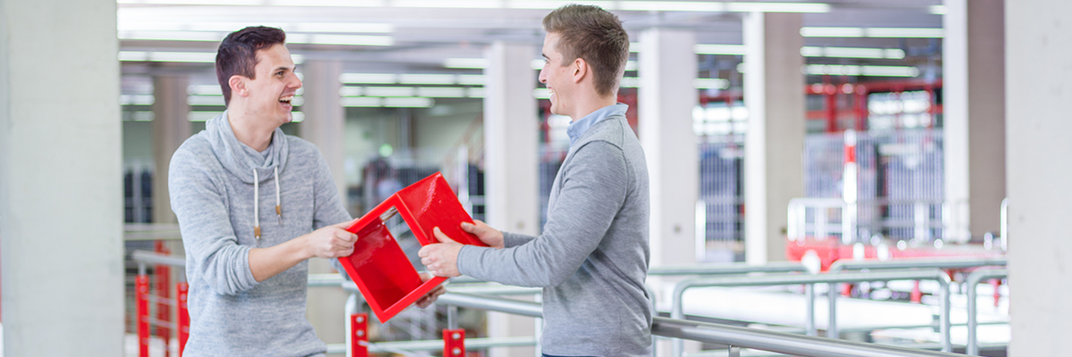 In the workplace of the future, people will work together with automatically triggering ordering systems and autonomous vehicles.