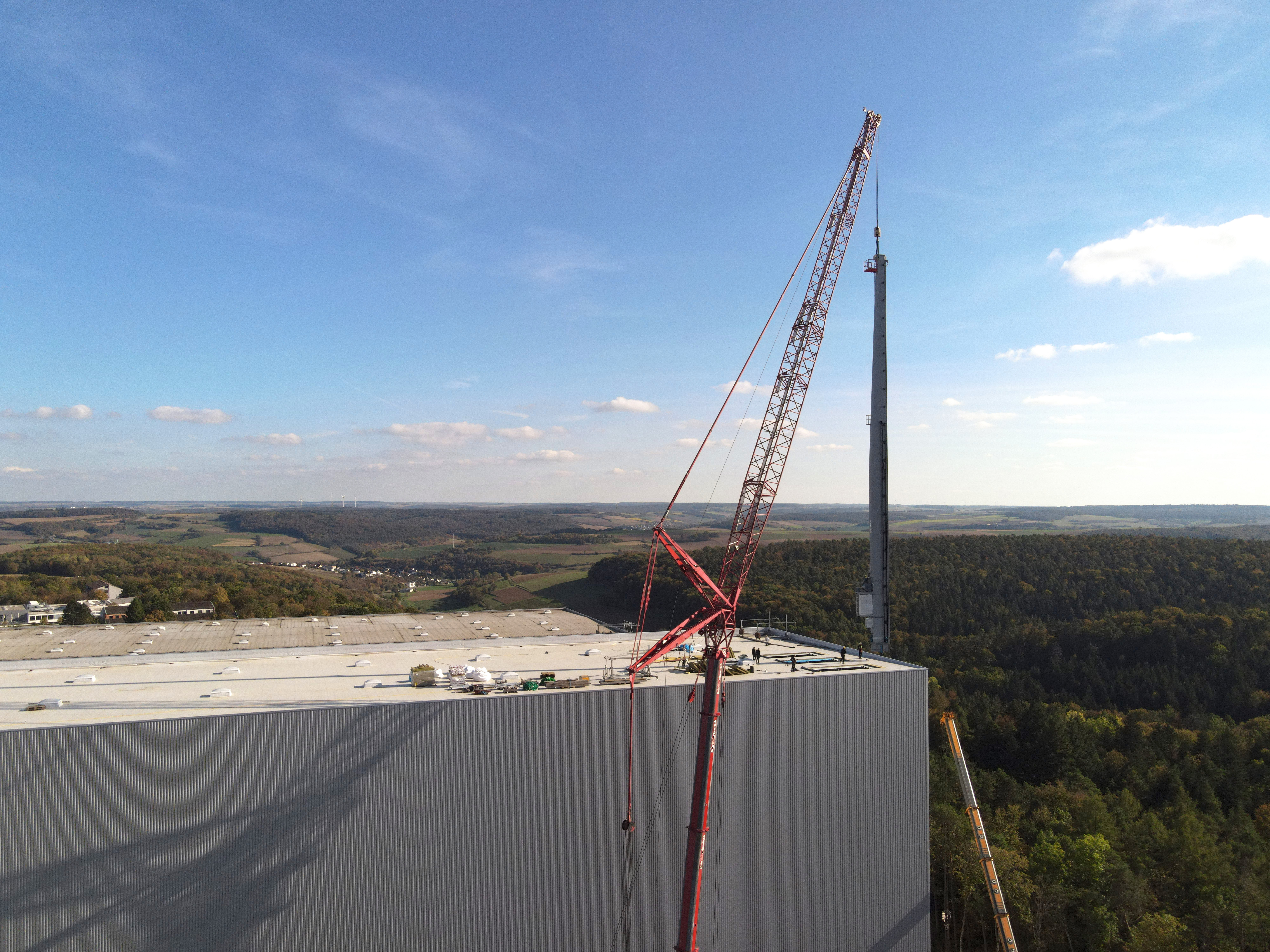 Per Schwertransport und Lastkran kamen die Regalbediengeräte im vergangenen Jahr an ihren Platz in das Hochregallager der Würth Industrie Service.