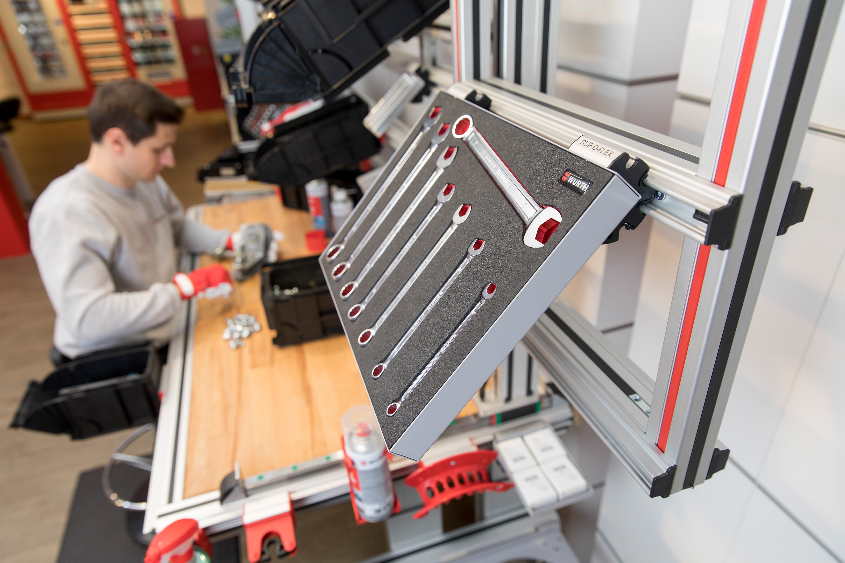 Das Profilsystem WAPS® (Würth Alu-Profilsysteme) ist besonders flexibel einsetzbar, wenn es um die ergonomische und individuelle Gestaltung von Arbeitsplätzen geht.