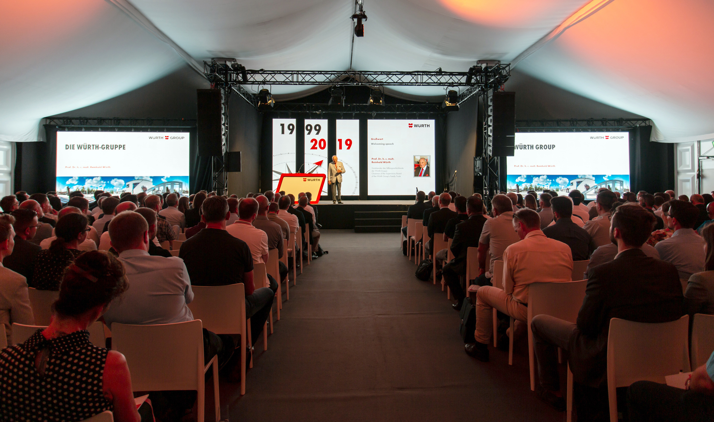 Fachforum C-Teile-Management mit 500 Teilnehmerinnen und Teilnehmern im Industriepark Würth – Prof. Dr. h.c. mult. Reinhold Würth gibt in seinem Vortrag Einblick in die Würth-Gruppe